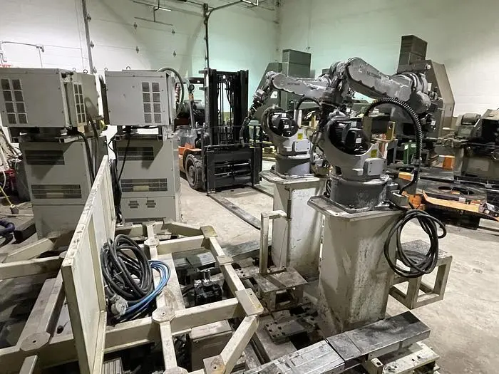 1-USED MOTOMAN SSA2000 MIG WELD CELL WITH EA1400N 6 AXIS CNC DUAL ARM DUAL ARM EA1400N ROBOTS AND 11,000 LB CAPACITY A/B SIDED INDEX TABLE