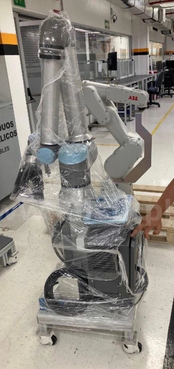 This UR10e robot and controller are mounted on a roll around stand, allowing for easy positioning and use of the robot. Work with the easiest collaborative robot out there! This unit allows you to simply place your hand on the robot and move it from point to point in order to write a program - it's that simple.